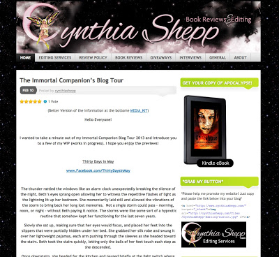 I’m very excited to announce that I’ll be doing reviews on the Cynthia Shepp Book Reviews and Editing blog.