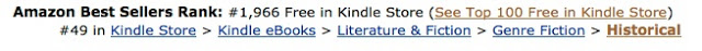 I am honored and thrilled that my one day only sale was such a success! Wow! Thank you to everyone who downloaded the book and to those who shared the link with others as well. By the end of the sale, the sneak peek was ranked #49 in Historical Fiction, and #1966 overall in Free Kindle books, so that makes me really excited and grateful.